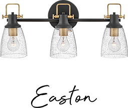 With style elements that blend both hip and historical, Easton exudes a modern industrial vibe. Bold clear seedy glass shades pair with a distinctive top yoke and vintage-inspired knobs for a robust silhouette.